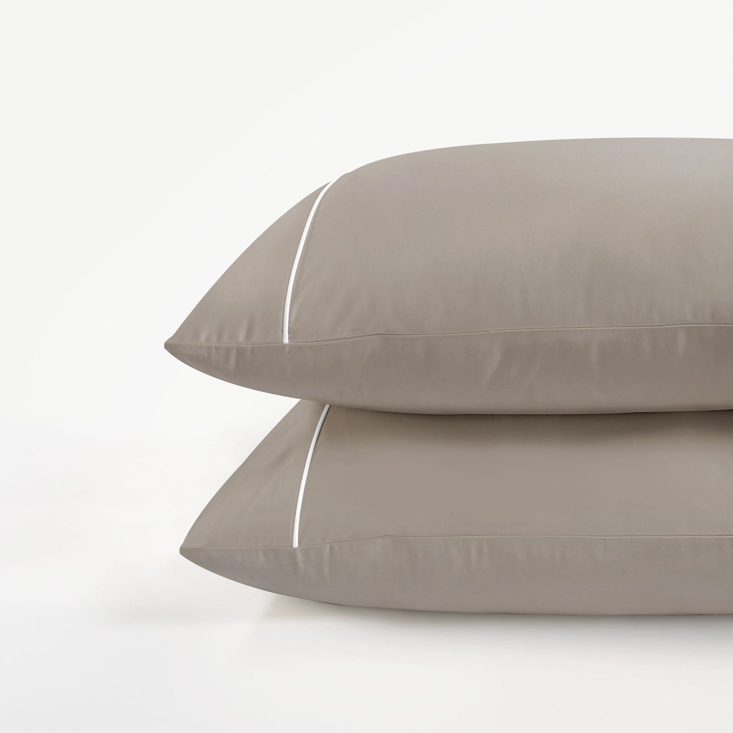 800 Thread Count Pair (2 Pillowcases) of Egyptian Cotton Duke of Bliss Lux Buttery Smooth Pillowcases - Simply Taupe with White Accent