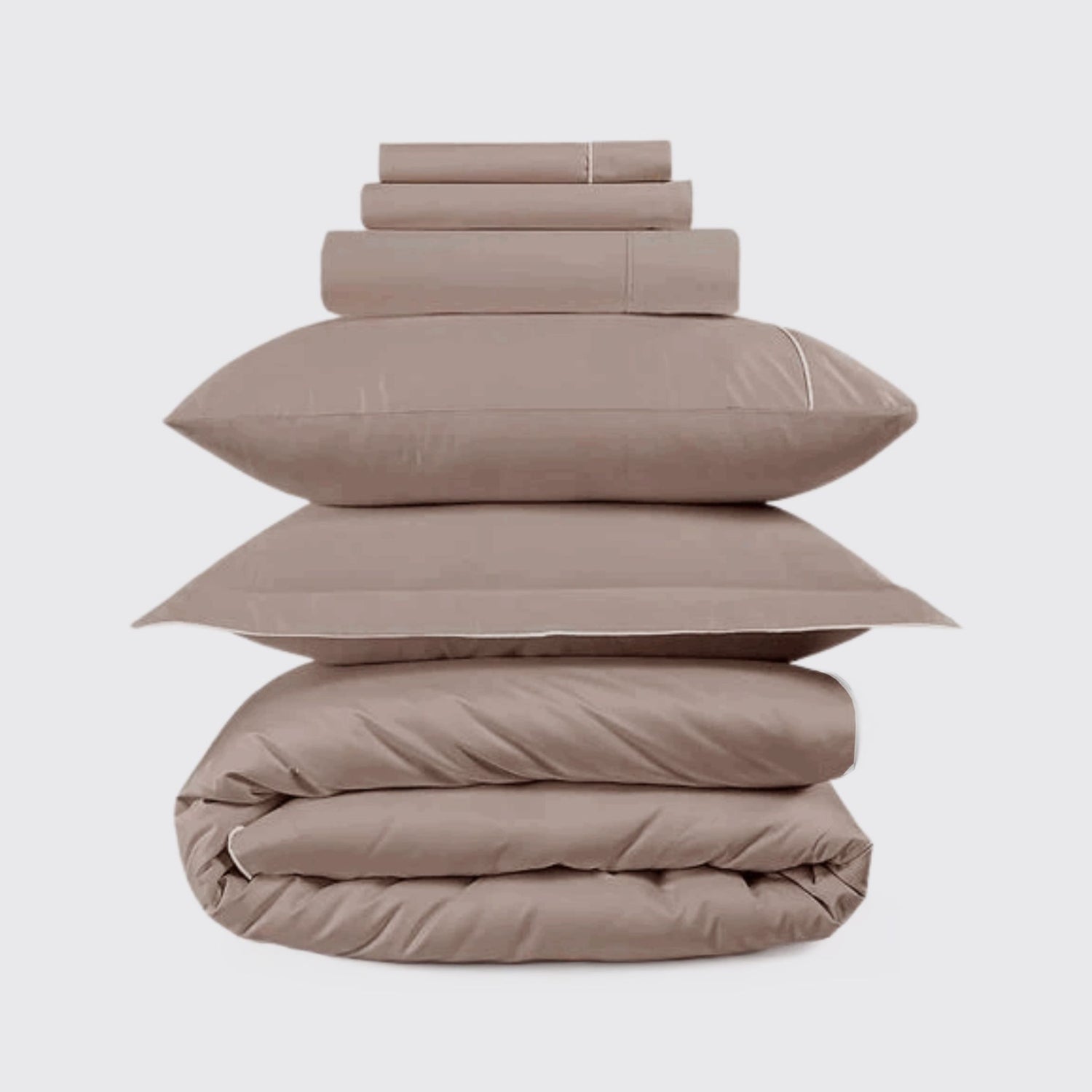 Our bedding is crafted from premium, hotel-quality materials such as high-thread-count cotton, breathable microfiber, or luxurious blends to ensure maximum comfort and durability.