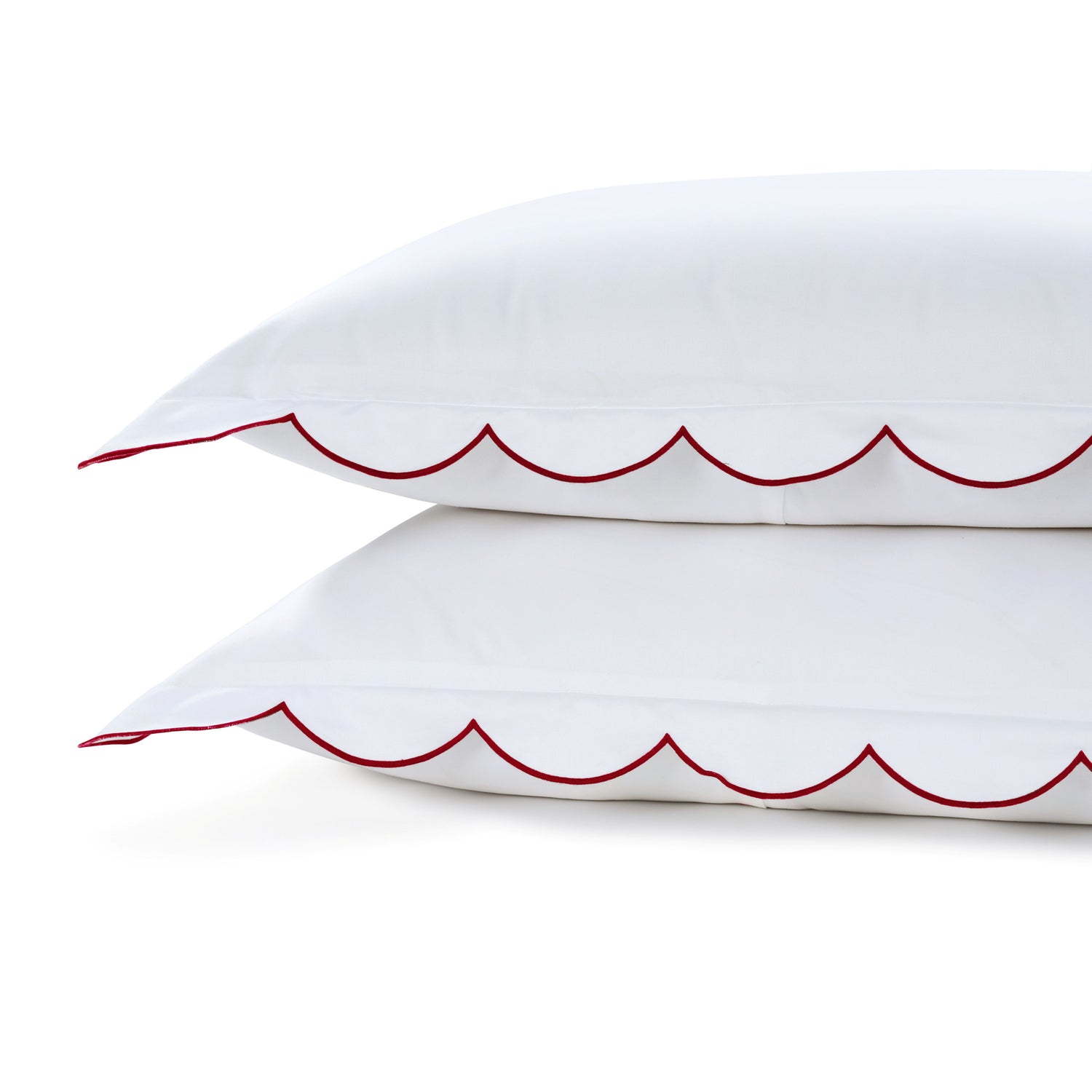 • Pair of Sophie LUXE Cotton Sateen Standard Pillow Cases in Brilliant White and Dark Burgundy