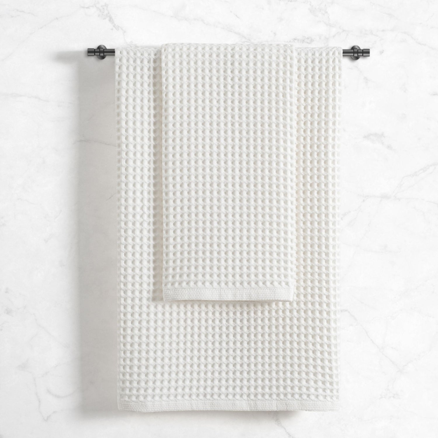 • Waffle weave design for fast drying, lightweight absorbency